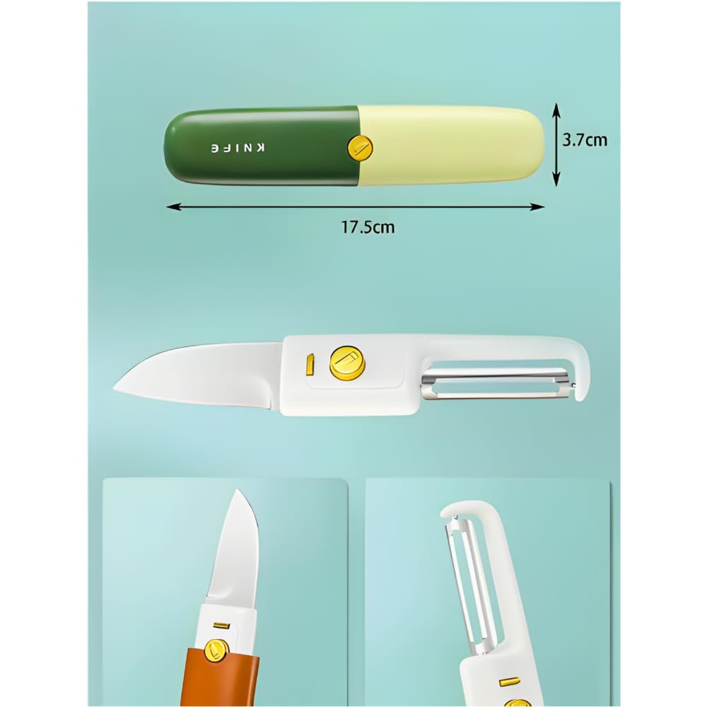 Fruit knife blade and toothed peeler: The fruit knife blade and the toothed peeler on the other side are made of high-quality stainless steel. The sharp blade can easily cut fruits and vegetables into pieces, which is very suitable for kitchen and outdoor camping. Toothed peeler helps you to slice potatoes, carrots, cucumbers and almost any food easily