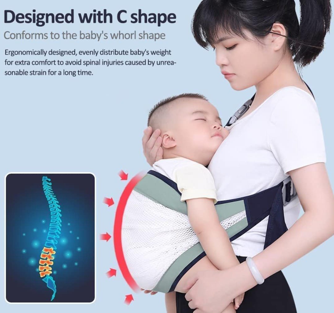 Ergonomic Baby Carrier Baby Wrap Carrier ergonomically redistributes the baby’s weight evenly for extra comfort and avoids injury to the spine due to excessive pressure for a long time. The C-shaped design fits the shape of the baby’s vertebrae, keeping the baby’s legs M-shaped, and making the baby comfortable.