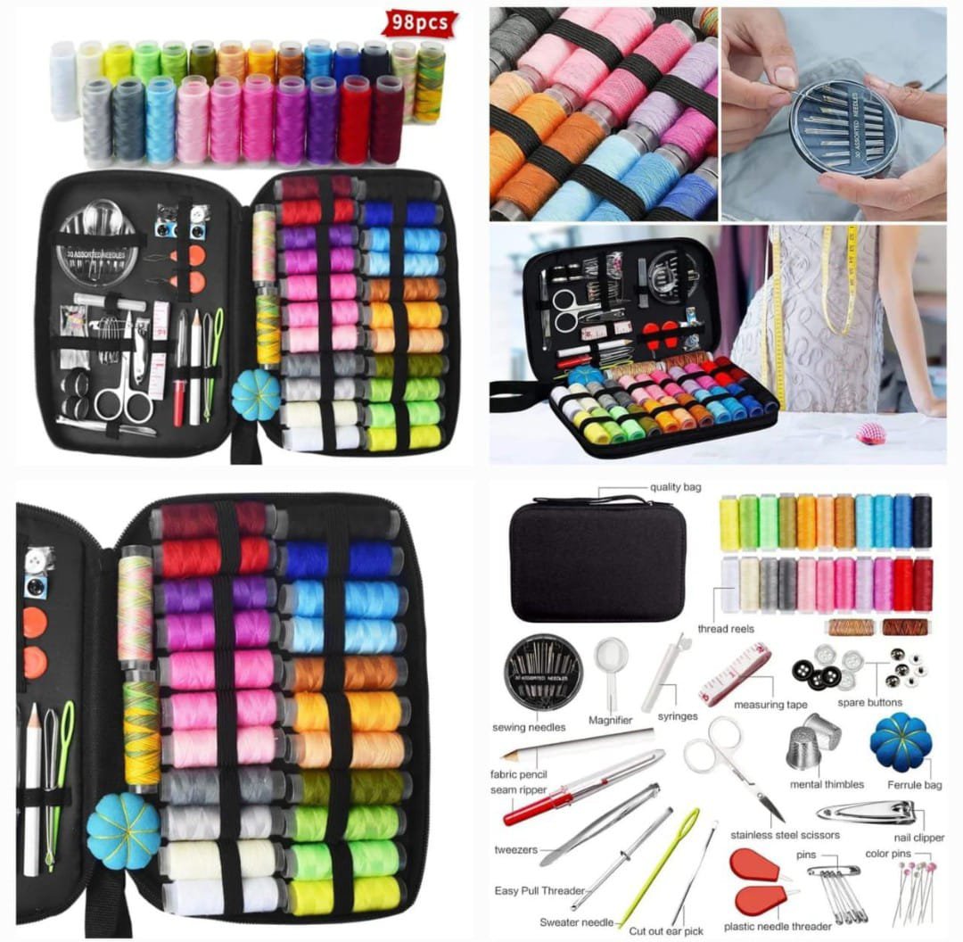 Everything You Need to SewThis sewing kit contains all the necessary tools needed to perform basic repairs and solves your daily sewing needs at home or while traveling. Our needle and thread kit comes with a variety of colors of thread, various sewing needles, Scissors, tape measure, needle threader, thread remover, Seam ripper, thimble, safety pins,button etc.