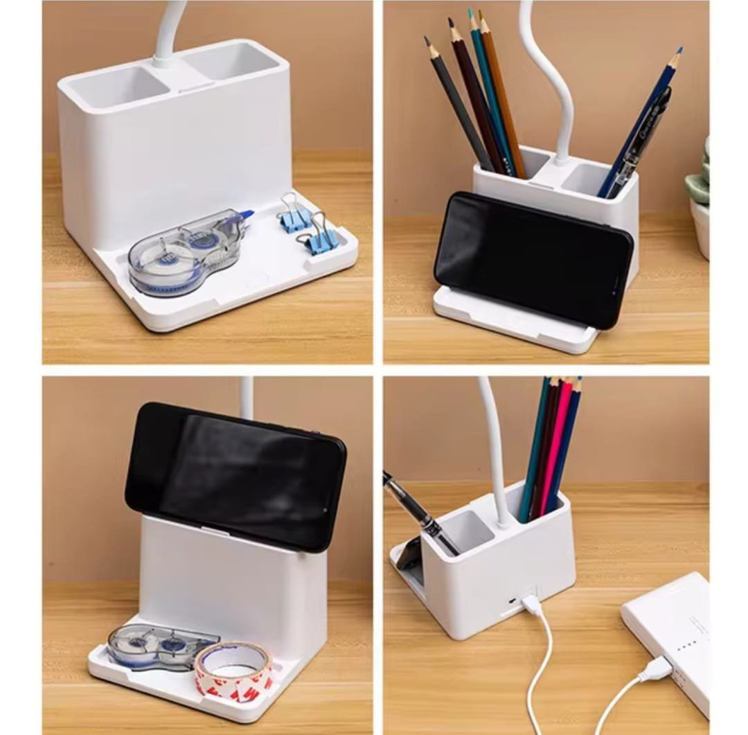 USB rechargeable LED table lamp eye protection dask lamp with phone holder pen holder touch